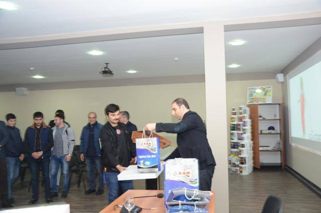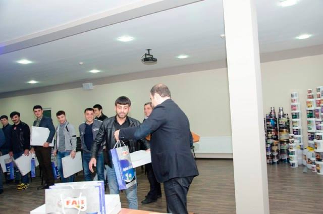 15.04.2016-cı il tarixdə "FAB Boya və Kimya Sənayesi" MMC-nin konfrans zalında "FAB Boya" komandası üzvlərinin mükafatlandırılma mərasimi həyata keçirildi. Şirkətin direktoru Kənan Məhərrəmov "FAB Boya" komandasının üzvlərini bu qələbə münasibətilə təbrik etdi, şirkətimizə bu qalibiyyəti bəxş etdikləri üçün "FAB Boya və Kimya Sənayesi" MMC adından komandamızın hər bir üzvünə öz təşəkkürünü bildirdi və arzu etdi ki, komandamızın uğuru davamiyyətli olsun, onlar bundan sonra daha böyük qələbələrə imza atsınlar. Sonda komanda üzvlərinə qiymətli hədiyyələr təqdim edildi.