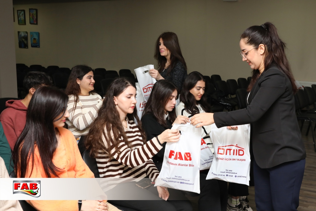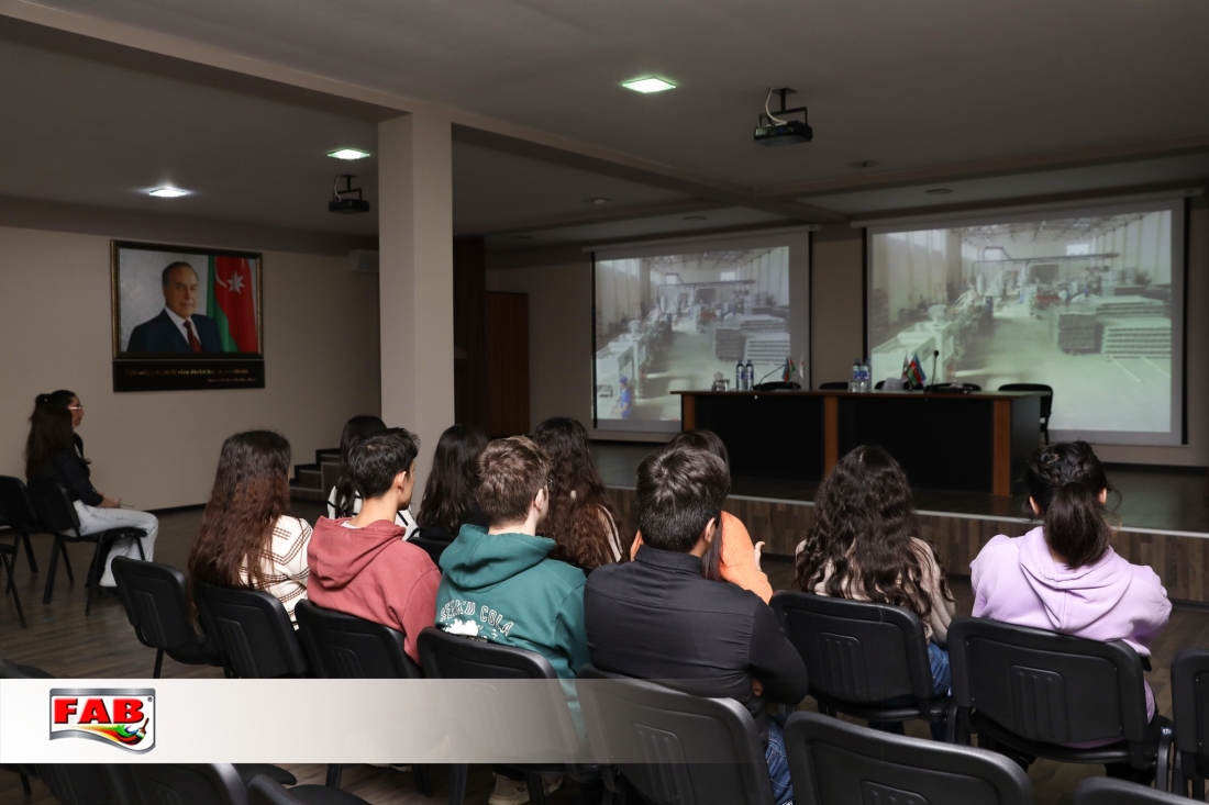 Daha sonra FAB Akademiyasının konfrans zalında şirkətimizin fəaliyyətindən danışan videomaterial nümayiş olundu. Tələbələrə simvolik hədiyyələr təqdim edildi, xatirə şəkli çəkdirildi.